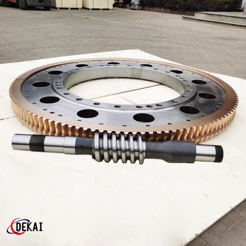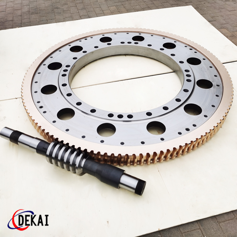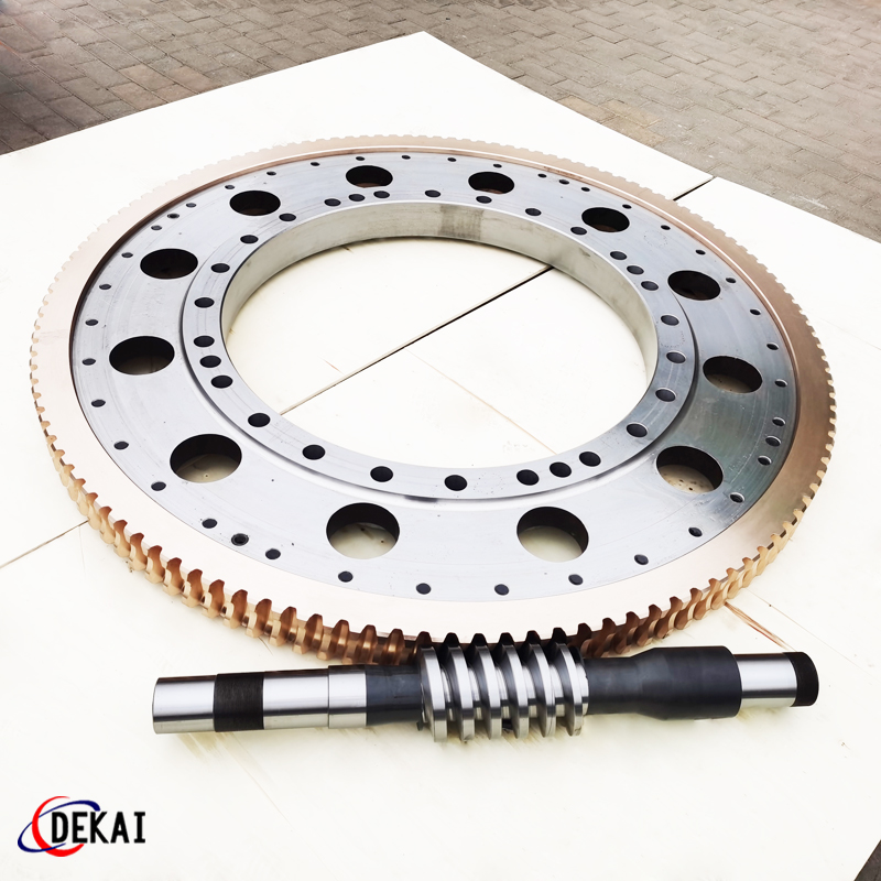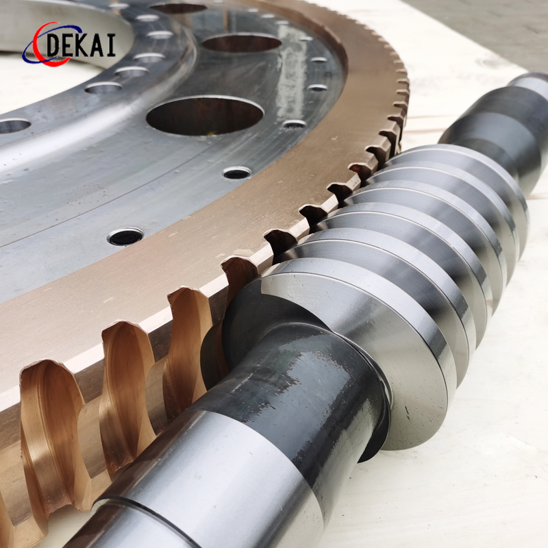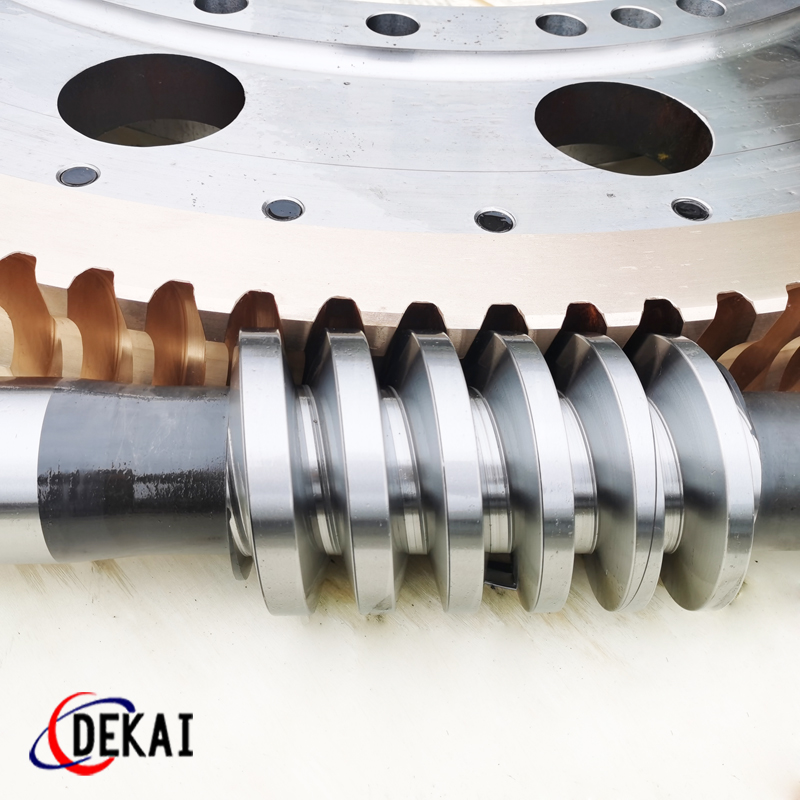德州德凱減速傳動機(jī)械有限公司采用雙蝸桿對消隙原理開發(fā)生產(chǎn)的精密蝸輪蝸桿副,主要用于大型機(jī)床工作臺的驅(qū)動,高精密分割器等無間隙圓周運(yùn)動精確定位場合。該蝸輪副中心距最大可做到2000mm,單節(jié)速比可做到1-365同時不產(chǎn)生回程間隙。