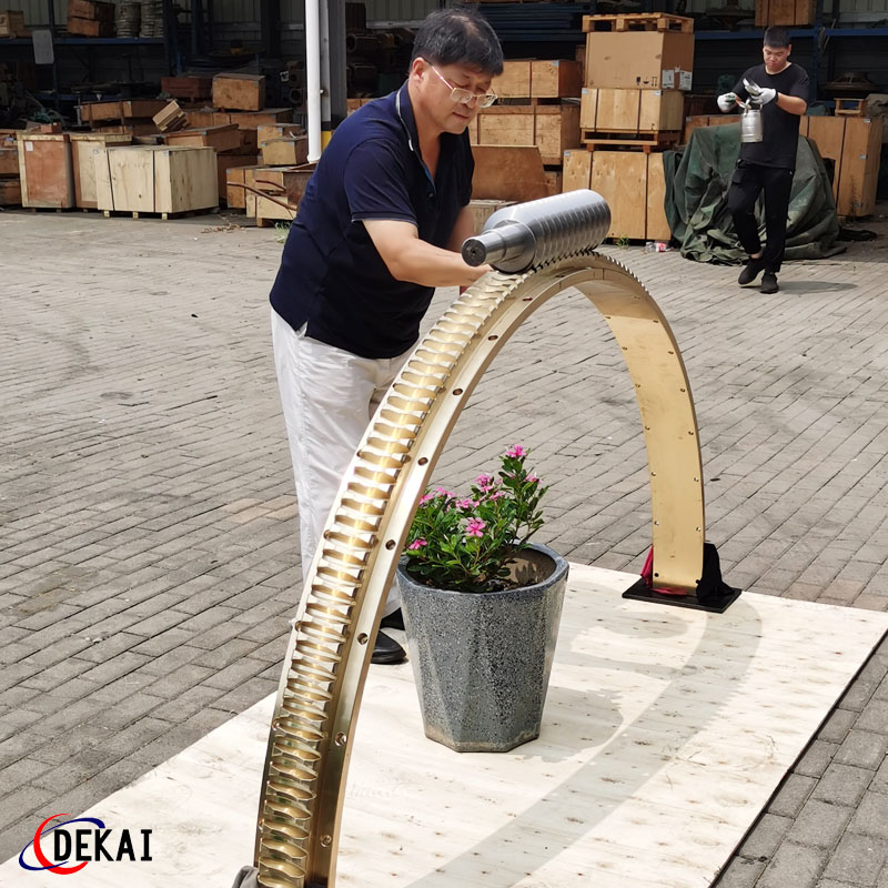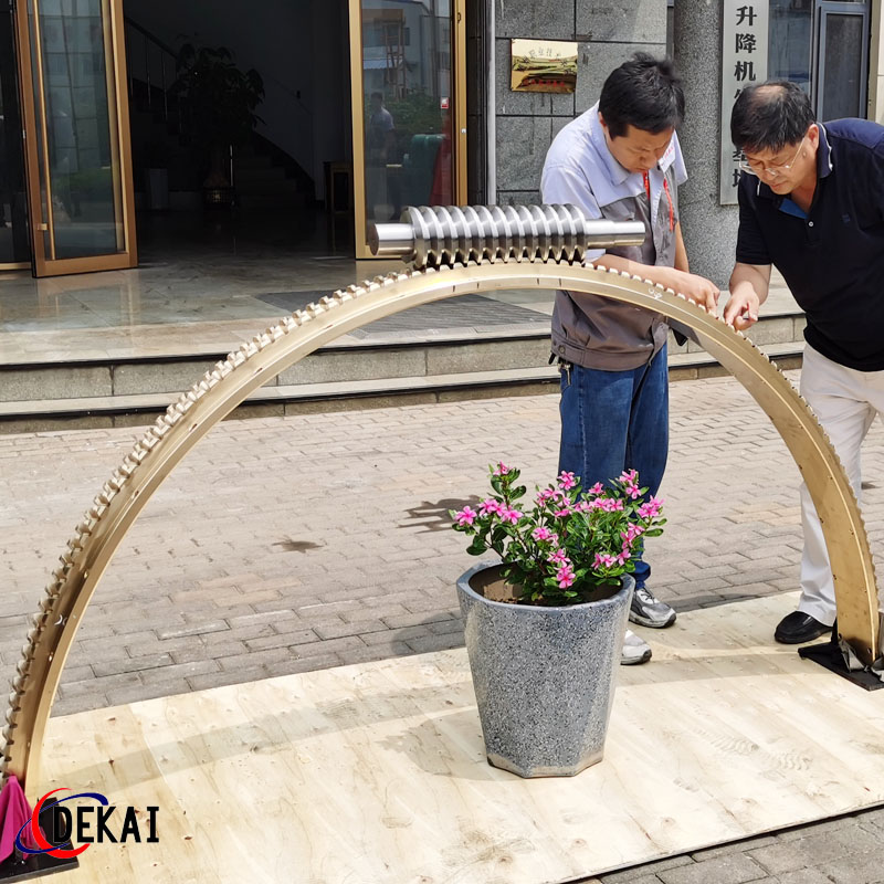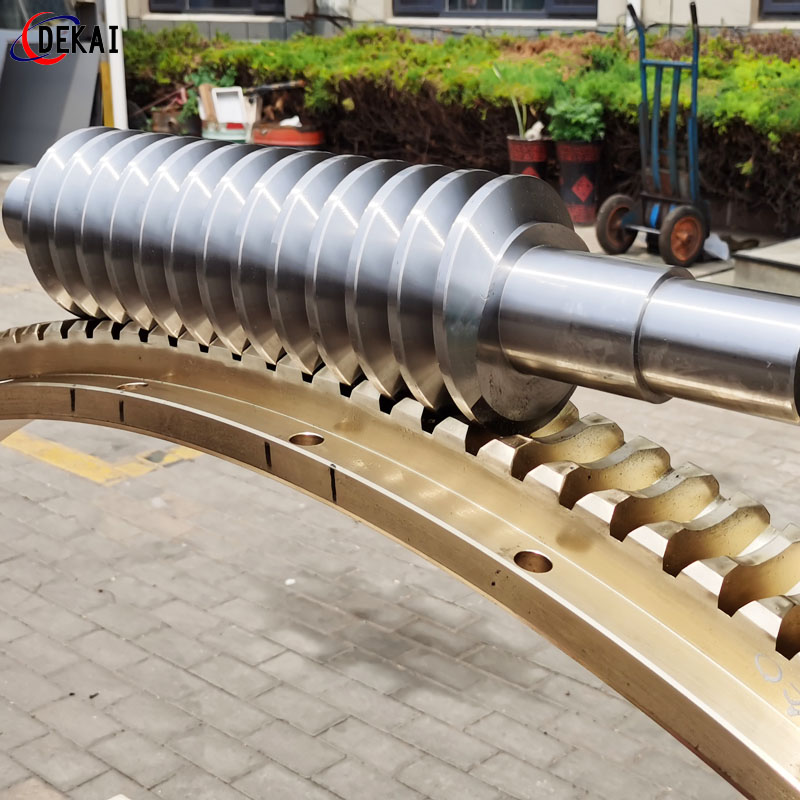 德州德凱減速傳動(dòng)機(jī)械有限公司采用雙蝸桿對(duì)消隙原理開發(fā)生產(chǎn)的精密蝸輪蝸桿副,主要用于大型機(jī)床工作臺(tái)的驅(qū)動(dòng),高精密分割器等無(wú)間隙圓周運(yùn)動(dòng)精確定位場(chǎng)合。該蝸輪副中心距最大可做到2000mm,單節(jié)速比可做到1-365同時(shí)不產(chǎn)生回程間隙。