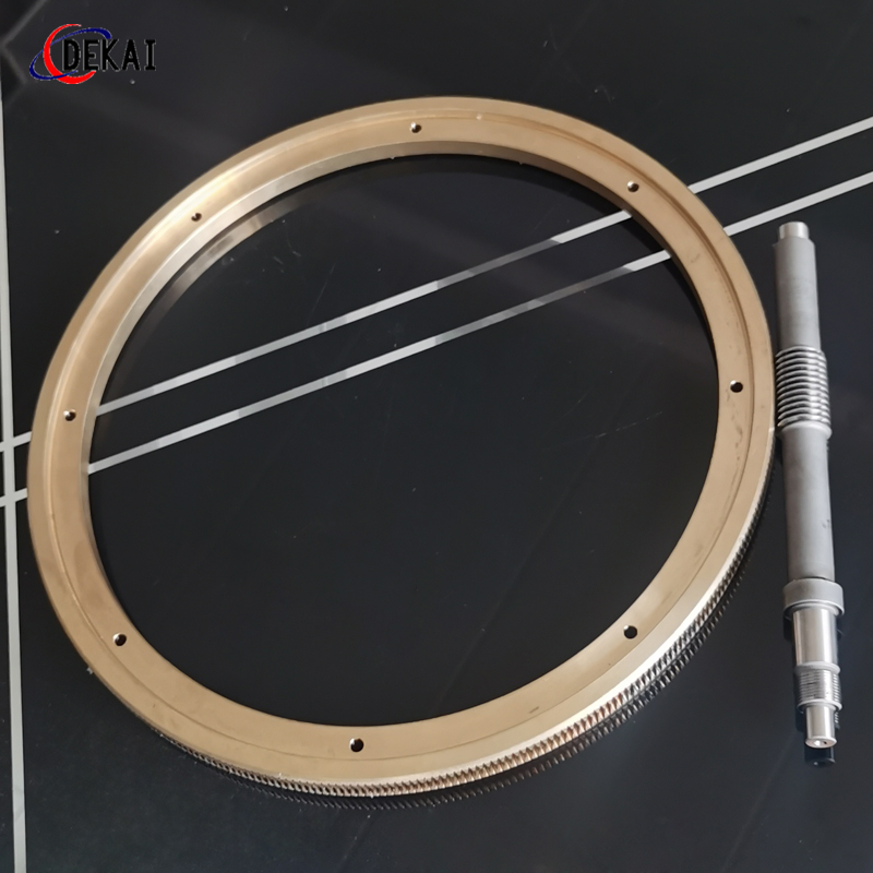 蝸輪系統(tǒng):材質(zhì):蝸輪特殊高強(qiáng)力鋁青銅合金;蝸桿:38CrMoAl合金鋼,正?;鬂B碳HRC60以上。