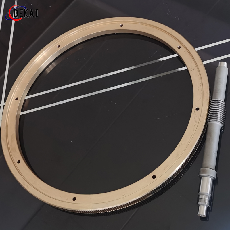 精密雙導(dǎo)程蝸桿副的優(yōu)點(diǎn):分度精度高,側(cè)隙可調(diào)整至0.01~0.03Mmm;齒面接觸穩(wěn),不會(huì)改變中心距。調(diào)整標(biāo)準(zhǔn),方便可靠。裝配靈活,裝配時(shí),用調(diào)整環(huán)來(lái)獲得合適的嚙合側(cè)隙。使用中如果因?yàn)槟p導(dǎo)致傳動(dòng)間隙增大,只要調(diào)整一下蝸桿的軸向位置,可以使蝸桿蝸輪傳動(dòng)副恢復(fù)到原來(lái)的精度,不需要更換新的蝸桿,蝸輪,比較實(shí)用。蝸桿材質(zhì)采用40Cr,42CrMo、38CrMoAl合金鋼。蝸桿采用錫青銅ZCuSn10Pb1離心澆鑄,具有高強(qiáng)度耐磨性。